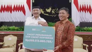 Jakarta, tvOnenews.com - PT Bank Syariah Indonesia Tbk (BSI) membayarkan zakat perusahaan dan zakat karyawan melalui Badan Amil Zakat Nasional (BAZNAS) RI mencapai Rp268 miliar.