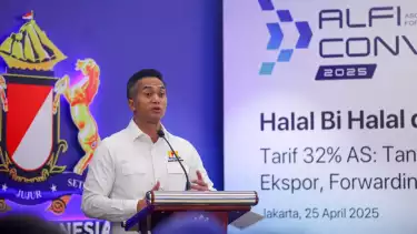 Hal ini disampaikannya dalam acara Halal Bihalal dan Forum Group Discussion Asosiasi Logistik dan Forwarder Indonesia (ALFI) 2025 bertema “Tarif 32% AS: Tantangan dan Peluang Baru dalam Ekspor, Forwarding, dan Logistik Nasional”, yang digelar di Menara Kadin Indonesia lt 29, Jakarta Selatan, Jumat (25/04/2025).