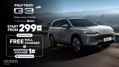 “Komitmen kami melalui kehadiran produk mobil listrik pertama kami yaitu Polytron G3+ dan G3 adalah ingin memperluas aksesibilitas yang lebih luas dalam solusi mobilitas harian bagi keluarga Indonesia. Dalam mewujudkan hal tersebut, melalui kolaborasi dengan Blibli, kami ingin menghadirkan pengalaman belanja kendaraan listrik yang mudah, nyaman dan aman. Sebagai bentuk apresiasi atas tingginya antusiasme konsumen Indonesia, selama periode pre-book ini, kami menyediakan berbagai pengalaman menarik.” ungkap Commercial Director Polytron, Tekno Wibowo.