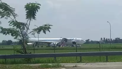 Pendaratan darurat dilakukan seusai adanya ancaman bom yang dikirimkan oleh orang yang tidak dikenal melalui email pada pukul 07.30 WIB.