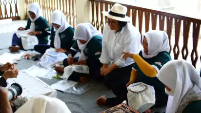 Lampung, tvOnenews.com - Kicau burung bersahut-sahutan di pagi hari, menemani suasana tenang Desa Negeri Katon, Kabupaten Pesawaran, Lampung. Di teras rumah-rumah sederhana, tampak ibu-ibu dan remaja putri tekun menundukkan kepala, jemari mereka lincah meletakkan benang emas dan perak di atas kain.