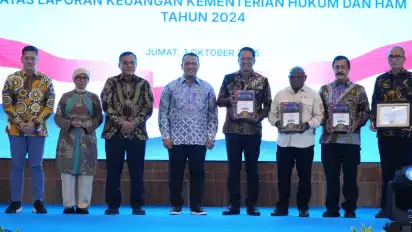 Jakarta, tvOnenews.com - Kementerian Hukum dan HAM (Kemenkumham) meraih opini Wajar Tanpa Pengecualian (WTP) atas pemeriksaan Badan Pemeriksa Keuangan (BPK) terhadap laporan keuangan tahun 2024.