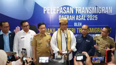 Jakarta, tvOnenews.com - Wakil Menteri Transmigrasi Viva Yoga Mauladi menyampaikan apresiasi kepada Pemerintah Provinsi Lampung yang menjadi tuan rumah kegiatan pelepasan calon transmigran. Acara tersebut berlangsung pada 16 Desember 2025 di Ballroom Balai Keratun, Kantor Gubernur Lampung.
