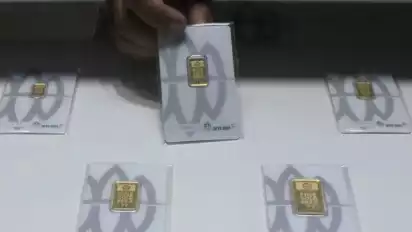 Jakarta, tvOnenews.com - Harga emas Antam hari ini 9 Maret 2026 merosot Rp55.000.