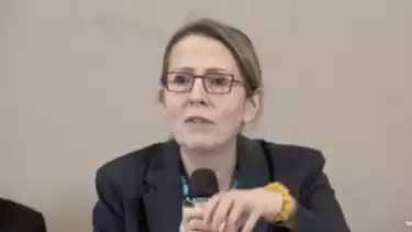 UN Resident Coordinator in Indonesia Valerie Julliand dalam diskusi publik yang diselenggarakan INDEF secara hybrid, di Jakarta, Rabu (13/7/2022).
