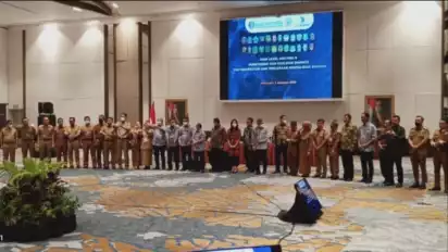 Makassar, Sulawesi Selatan- Sebanyak 24 kepala daerah di Provinsi Sulawesi Selatan (Sulsel), menandatangani dukungan untuk meningkatkan kuantitas dan kualitas elektronfikasi transaksi pemerintah daerah (ETPD) saat high level meeting : monitoring dan evaluasi Tim Percepatan dan Perluasan Digitalisasi Daerah (TP2DD) se-Sulawesi Selatan, Selasa (8/2/2022), di Hotel Claro Makassar.