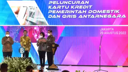 (Gubernur BI Perry Warjiyo dalam peluncuran Kartu Kredit Pemerintah Domestik (KKP Doemstik) di Jakarta, Senin (29/8/2022). Sumber: ANTARA)