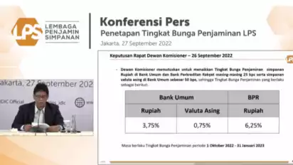 LPS Naikkan Tingkat Bunga Penjaminan Simpanan Rupiah Jadi 3,75 Persen