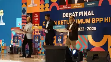 Jakarta - Rangkaian kegiatan Road to Musyawarah Nasional (Munas) Himpunan Pengusaha Muda Indonesia (HIPMI) XVII untuk memilih Ketua Umum Badan Pengurus Pusat (BPP) HIPMI 2022-2025, telah memasuki fase akhir. HIPMI menggelar Debat Final Kandidat Calon Ketua Umum (Caketum) BPP HIPMI periode 2022-2025.