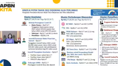Ia memerinci klaster perlindungan masyarakat terdiri dari realisasi Bantuan Langsung Tunai Bahan Bakar Minyak (BLT BBM) Rp12,6 triliun untuk 20,7 juta Keluarga Penerima Manfaat (KPM), Program Keluarga Harapan (PKH) senilai Rp28,6 triliun untuk 10 juta KPM, serta bantuan tunai Pedagang Kaki Lima dan Warung (PKLW) Nelayan Rp1,3 triliun untuk 2,1 juta orang.