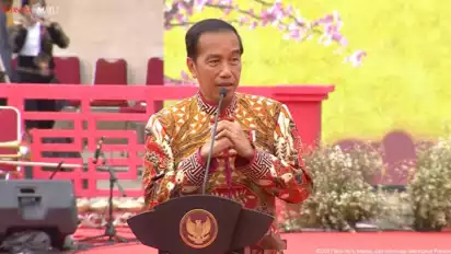 Jakarta - Presiden Joko Widodo (Jokowi) menghadiri perayaan Imlek Nasional 2023 di Lapangan Banteng, Jakarta Pusat, Minggu (29/1/2023). Saat menyampaikan pidato, presiden mengenang keputusannya tidak memberlakukan lockdown saat awal pandemi COVID-19 sehingga menghindarkan Indonesia dari potensi anjloknya perekonomian hingga minus 17 persen.