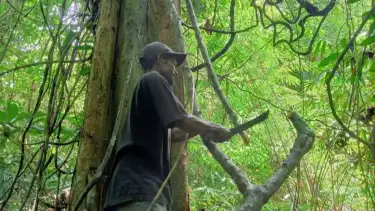 Hermanus Do sempat mengajak tim liputan Antara TV Jakarta berjalan kaki menelusuri kawasan Hutan Lingswok untuk mencari tali kuning obat tradisional suku Moi Kelin itu.