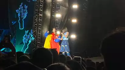 Tak berhenti disana, Ramengvrl dibonceng motor untuk mengelilingi panggung festival. Ramengvrl pun mengundang Awich dan Basboi untuk bernyanyi bersama.