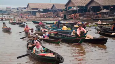Pasar terapung ini buka selepas subuh hingga pukul tujuh pagi. Para pedagang menjajakan kebutuhan sehari hari seperti sayur mayur, ikan, hingga kue tradisional.