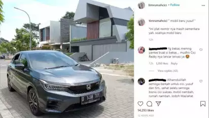 "Mobil baru yusuf'," tulis @timrumahcici melalui caption unggahan yang dibagikan pada Kamis (2/9). "*ini plat nomor nya masih palsu yah, soalnya mobil baru.