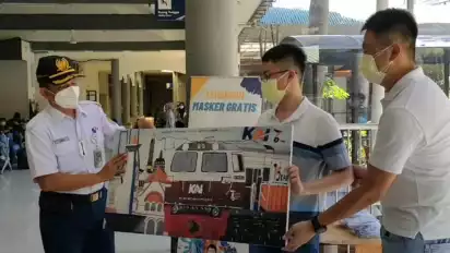 "Tadi kegiatannya menyerahkan hasil lukisan yang kemarin saya lukis di gallery. Dan membagikan masker gratis kepada penumpang," ujarnya.