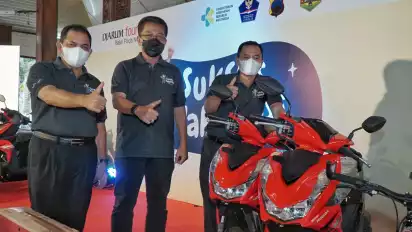Penyerahan Simbolis Hadiah Motor kepada Masyarakat yang Telah Menyelesaikan Vaksinasi Covid-19 Dosis Satu dan Dosis Dua
