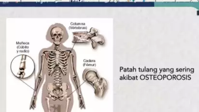 Dia menambahkan, tulang yang paling sering patah akibat penyakit osteoporosis di antaranya tulang belakang, tulang paha, tulang panggul, dan tulang lengan.