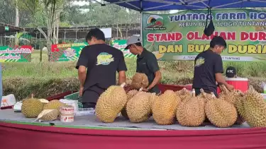 "Tentunya durian ini tidak hanya daging matangnya, bisa juga dilakukan inovasi dalam beberapa makanan misalnya kolak durian, keripik durian, untuk bahan campur kue, es krim durian, dan masih banyak lagi," jelasnya.