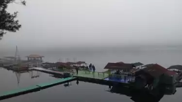 Namun sayangnya, keindahan Telaga Menjer tertutup kabut tebal imbas hujan yang turun di Wonosobo.