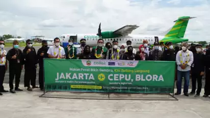 Penerbangan pertama di Bandara Ngloram Blora ini dengan maskapai Citilink dilakukan Jumat (26/11/2021) dari Halim Perdana Kusuma Jakarta.