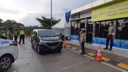 Untuk memastikan para pengguna jalan yang melintas di tol Solo Semarang sudah melakukan vaksin petugas gabungan dari Polres Boyolali Jawa Tengah juga melakukan sosialisasi dan pengecekan aplikasi lindungi peduli.