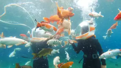 "Baru pertama ini mencoba. Asyik banget. Jadi di dalam air itu bisa melihat pemandangan dan bisa bermain dengan ikan-ikan," ujarnya.