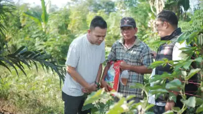 Kader DPP Gerindra ini mendatangi para petani yang sedang bekerja di ladang.