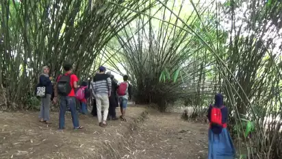 "Sekitar 15 tahun lalu, saya ditugasi menanam 90 jenis bambu. Yang tumbuh berkembang baik hanya 38. Ada yang mati, ada yang terbawa erosi," ujar Narsim (50), warga setempat yang merintis terbentuknya taman wisata ini.