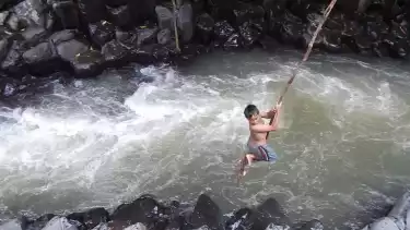 Di dekat deretan tebing terdapat kedung atau semacam cerukan yang membentuk kolam. Di atasnya ada batang pohon besar yang akarnya menjuntai hingga nyaris menyentuh permukaan air. Anak-anak desa setempat memanfaatkannya untuk atraksi tarzan, lalu melompat ke sungai. Para wisatawan pun bisa juga mencobanya. Tapi kalau lagi hujan dianjurkan tidak melakukannya karena kadang air sungai naik.