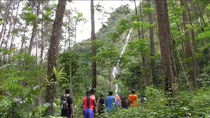 Purbalingga, Jawa Tengah - Air terjun dan perbukitan, dua hal yang tak bisa dipisahkan dan saling melengkapi pesonanya. Di Kabupaten Purbalingga, Jawa Tengah, ada air terjun yang mengalir di sepanjang tebing bukit.