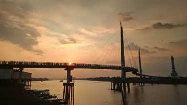 Tak jauh dari lokasi ini kamu juga bisa berjalan-jalan sambil melihat pemandangan matahari yang jatuh di sore hari di dekat sebuah jembatan yang dibangun dekat tempat wisata di Jambi ini.