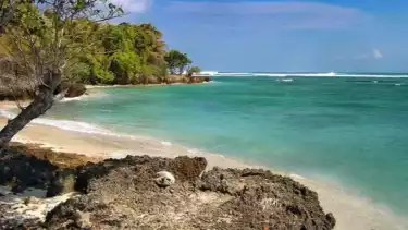 Selain itu, Pantai Plengkung juga menunjukan keindahannya dengan bebatuan karang yang unik serta pepohonan hijau yang menjadi semakin eksotis untuk dinikmati.
