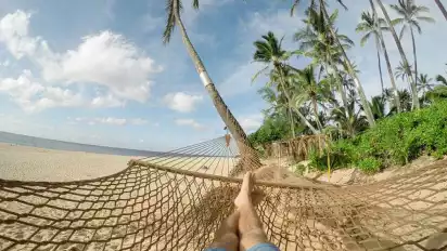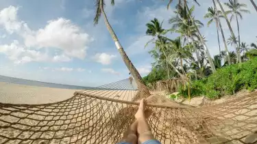 Indahnya pemandangan membuat semakin betah hingga tak ingin beranjak dari pantai. Apalagi sambil menikmati lezatnya makanan laut dan buah kelapa di pinggir pantai membuat sensasi seperti berada di pulau tropis.