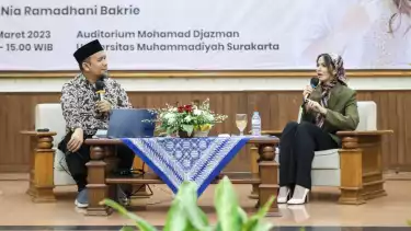 Sukoharjo, tvOnenews.com - Nia Ramadhani Bakrie goes to campus, hadir di kota Solo, Jawa Tengah, menyapa ratusan mahasiswa Universitas Muhammadiyah Surakarta (UMS), Kamis, 09 Maret 2023.