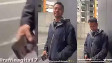 “Pak Raffi Ahmad. Masya Allah, sultan Andara. Biasanya lihat di video, Tolong kirim salam buat anak kerja di Jepang dong, kasih semangat,” ungkap perekam video yang diunggah oleh akun Twitter @k3ppooo.