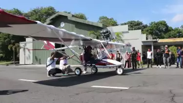 "Daya angkut pesawat, semua sama pilot dan bahan bakar itu kira-kira 3 kuintal, dengan terbang ketinggian saat diuji sama pilot itu, Mas Faslan itu bisa mencapai 700 kaki," kata David Ahmad Tabib, pembuat Pesawat Aerotek X1.