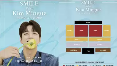 Untuk pembelian tiket fan meeting Kim Mingue dapat dibeli di tiket.com dan harga tiket yang tertera belum termasuk pajak dan biaya admin lainnya.