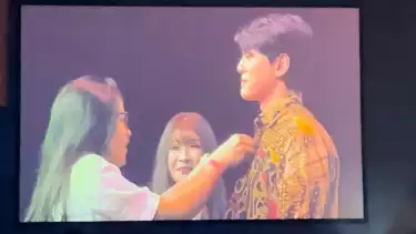 Dalam fanmeeting semalam, Kim Mingue banyak melakukan interaksi dengan fans Indonesia berupa games, salah satunya mengenakan batik.