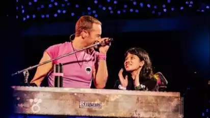 Nadia, Fans Coldplay asal Indonesia bernyanyi bersama Christ Martin. (Ist)