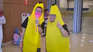 Bukan hanya itu, bahkan sejumlah penggemar tampil maksimal dengan mengenakan dress berwarna merah muda hingga kostum pisang.