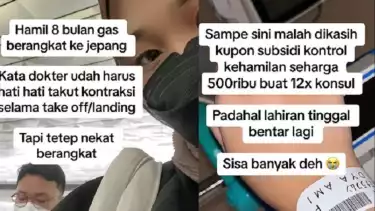 "Hamil 8 bulan gas berangkat ke Jepang. Kata Dokter sudah harus hati-hati takut kontraksi selama take off/ landing. Tapi tetap nekat berangkat," tulis keterangan dalam akun tersebut.