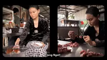 "Ini memang video parodi, ya biar unik memang kita beri judul Gadis Klatak, karena memang menceritakan tentang dunia Sate Klatak ya. Nah disini dengan tokohnya bernama Jeng Ngat. Itu parodi dari tokoh Jeng Yah di Gadis Kretek," jelas Pak Jede, pemilik sate Klatak.