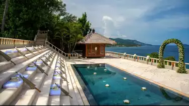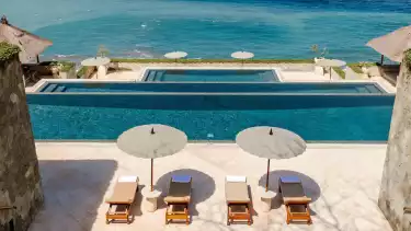 Ditambah lagi disajikan dengan pemandangan selat Lombok dan gunung Agung hingga Teluk Amuk, disertai kolam renang pribadi.
