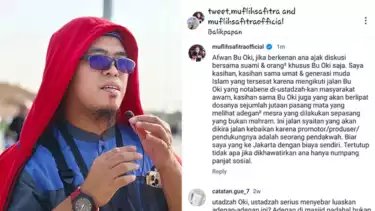 “Afwan Bu Oki, jika berkenan ana ajak diskusi suami & orang-orang khusus Bu Oki saja. Saya kasihan, kasihan sama umat & generasi muda Islam yang tersesat karena mengikuti jalan Bu Oki yang notabene di-ustadzah-kan masyarakat awam, kasihan sama Bu Oki juga yang akan berlipat dosanya sejumlah jutaan pasang mata yang melihat adegan-adegan mesra yang dilakukan sepasang yang bukan mahram,” tulis Ustaz Muflih Safitra pada akun media sosial Instagramnya @muflihsafitraofficial.