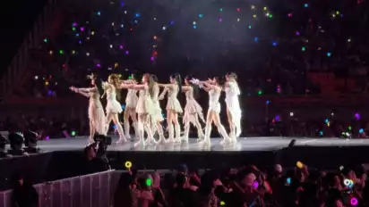 "Penonton lantai 3 mana suaranya? lantai 2 mana suaranya? lantai 1 mana suaranya. Lagi lagi. Emang boleh sekompak ini?" ucap Dahyun yang disambut teriakan fans.
