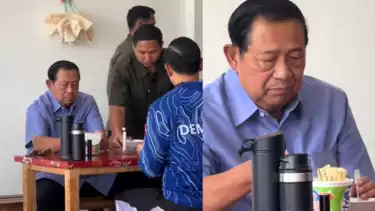 tvOnenews.com - Media sosial dihebohkan dengan sebuah video yang menampilkan Presiden RI ke-6, Susilo Bambang Yudhoyono (SBY) sedang makan mie instan di salah satu warung rest area.