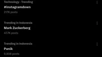 Tagar #instagramdown pun menempati peringkat pertama trending di X.
