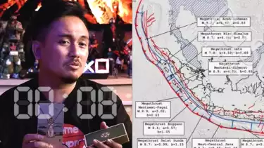 Denny Darko (kiri), zona megathrust di Indonesia (kanan). Sumberl: Kolase tvOnenews.com.