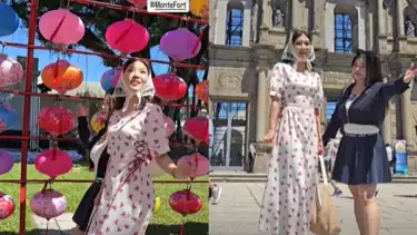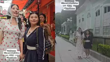 Sarwendah dan Wendy Lo saat berada di Rua do Cunha (kiri) dan Taipa Houses (kanan), Makau, China. Sumber: Instagram/sarwendah29.